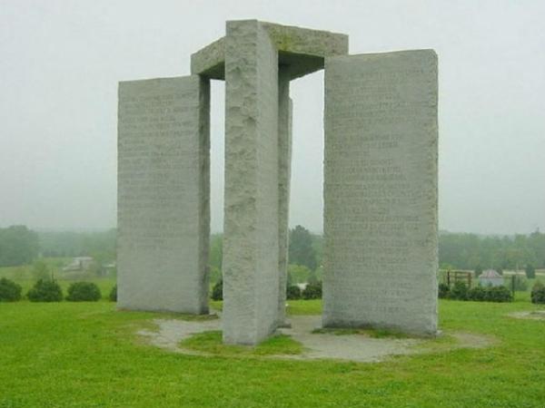 佐治亞石陣:并不是所有神秘建筑都有遠古歷史和起源,佐治亞石陣的歷史僅有30多年,它位于佐治亞州東北部,石柱上雕刻著八種不同語言的文字,神秘文字可能是《十誡》,在石陣主體旁的一個小石碑上描述著石陣的大小,以及石柱的天文排列結構。