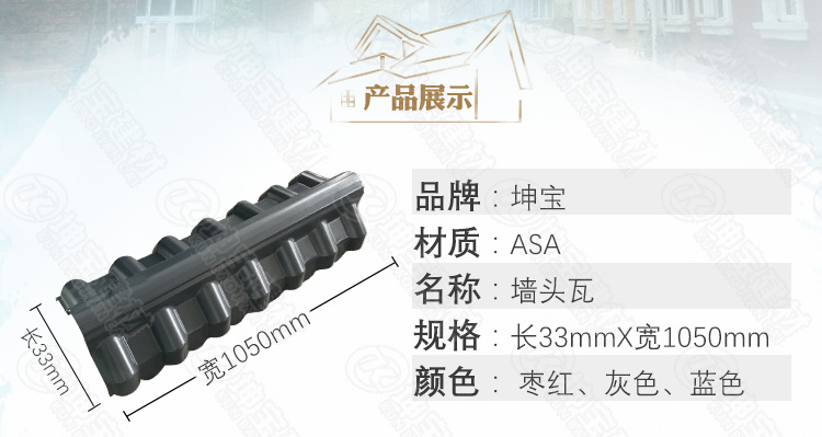 【名稱】 | 仿古圍墻瓦、女兒墻頭瓦、樹(shù)脂圍墻瓦 | ||