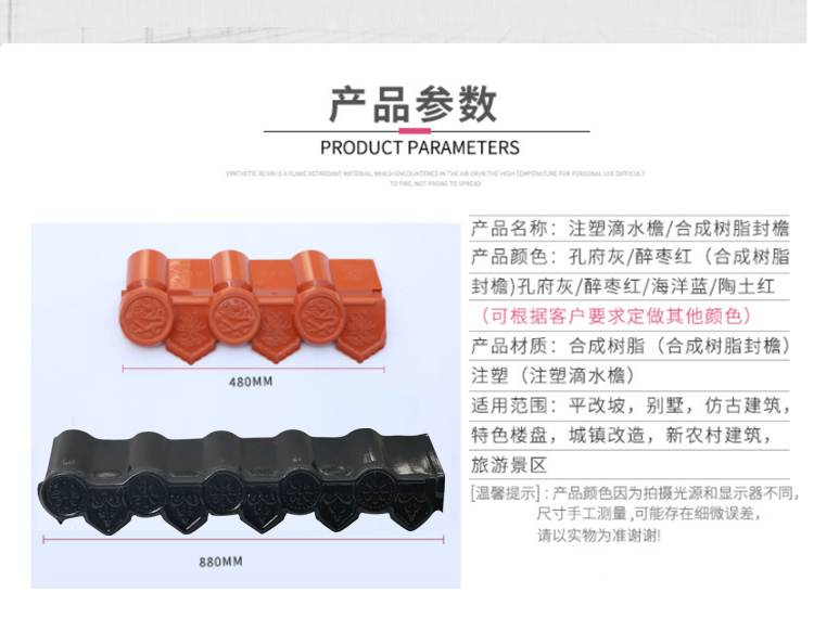 材質(zhì):asa樹脂(與主瓦相同材質(zhì)烘烤壓模)