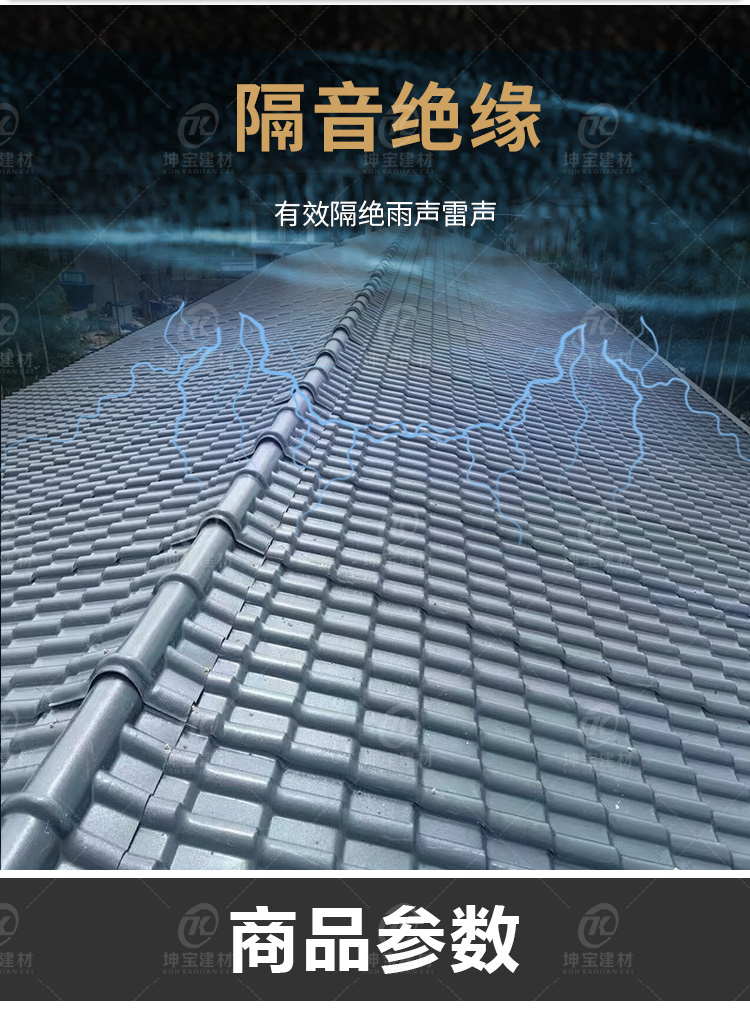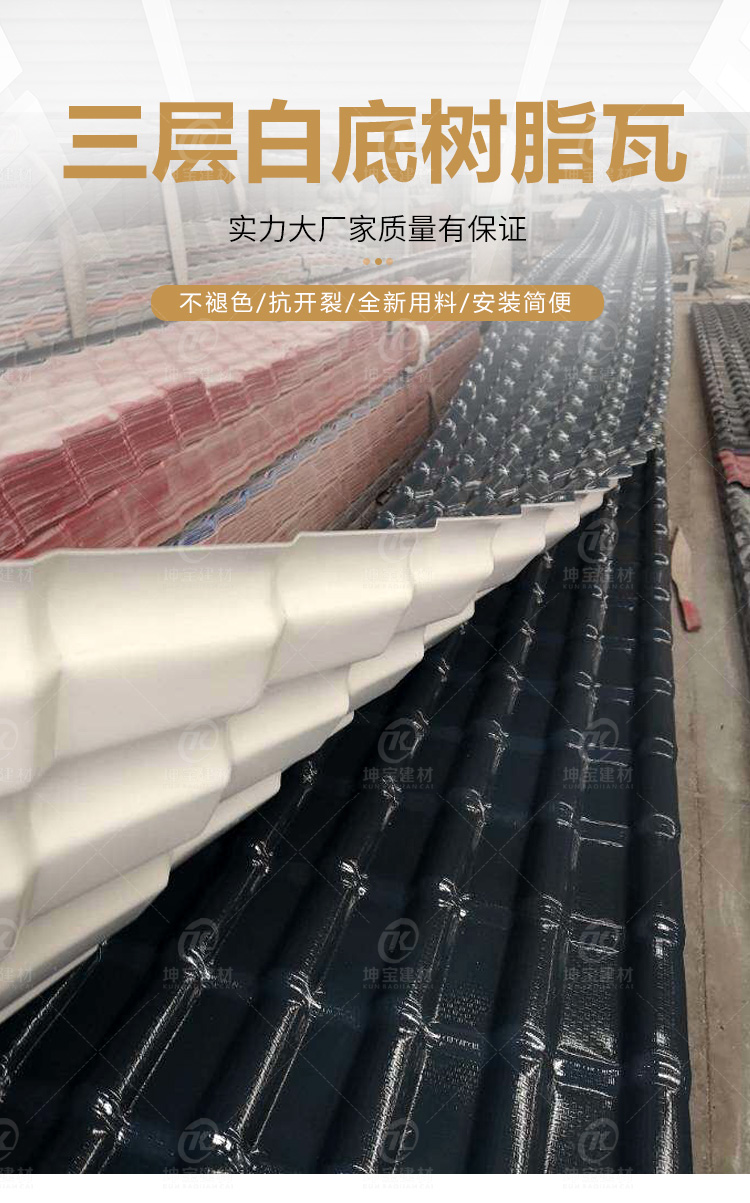 樹脂瓦是材料創新的得意成果,是運用高新化學化工技術研制而成的建筑材料,是傳統屋面瓦替代品。樹脂瓦具有重量輕、強度大、防水防潮、防腐阻燃、隔音隔熱等多種優良特性,成為我國推行節能不可缺少的建筑材料。