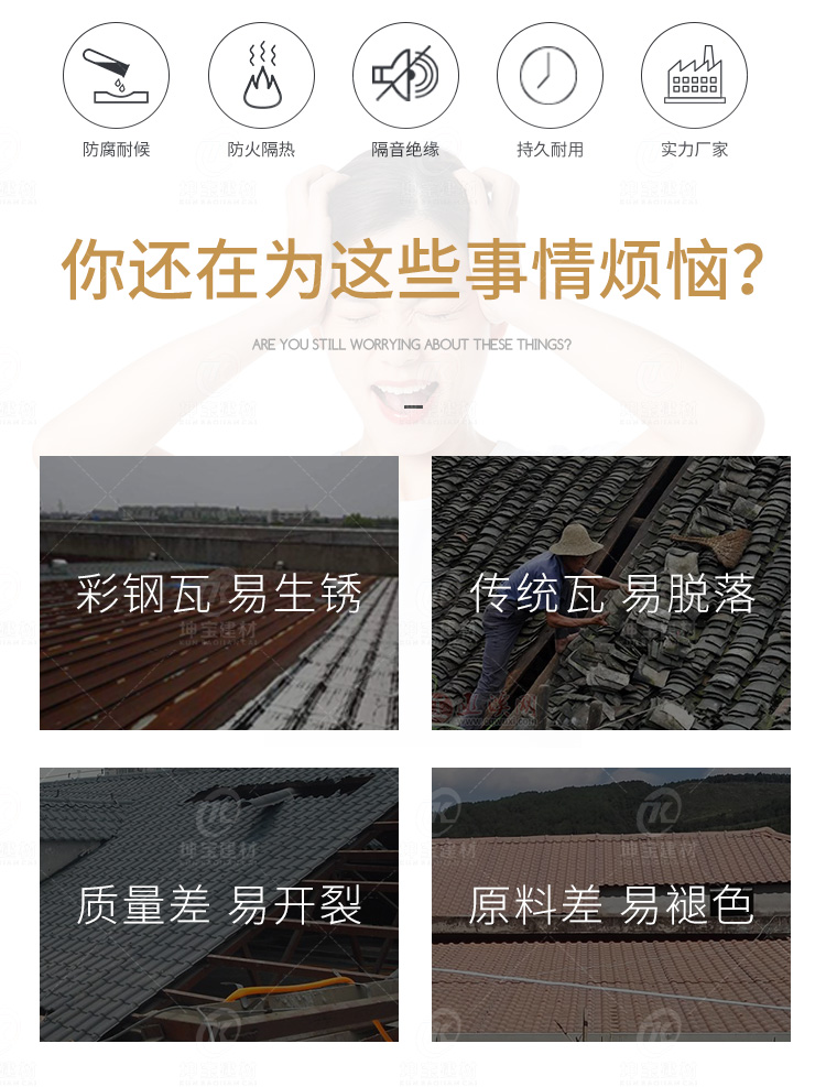 用途:平改坡屋面,別墅屋面,農村自建房屋面,民宅屋面,工業廠房,仿古建筑,涼亭圍墻裝飾等