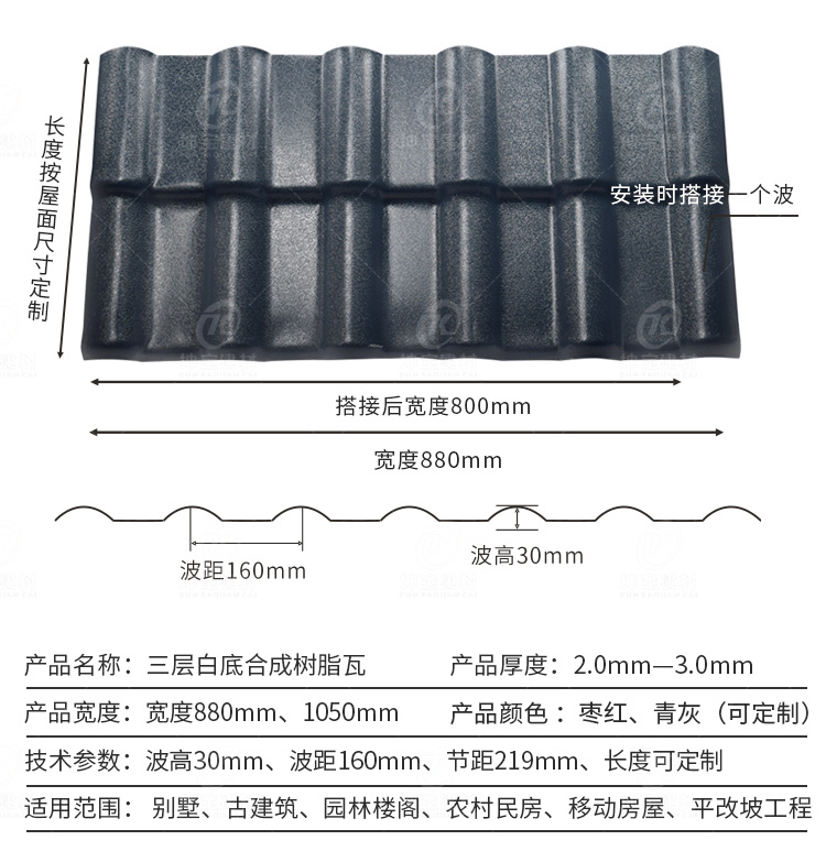 顏色:棗紅、青灰、藍色等 | 波高:30mm |