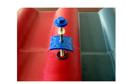 固定瓦時應先將防水圈置于緊固件后面凹槽內,電鉆要與瓦面垂直,緊固瓦時釘的松緊要適中,完畢后再安裝防水帽且要上緊。